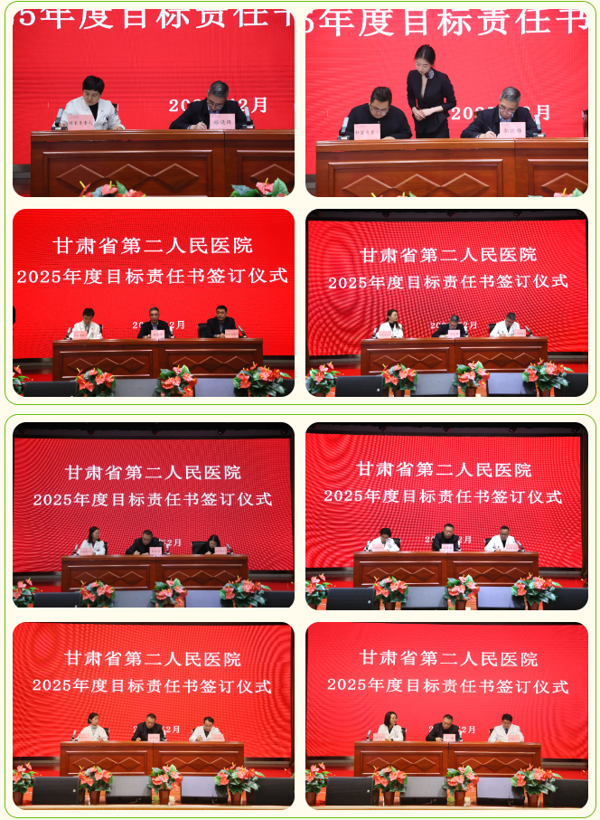 党委书记郑晓锋,党委副书记、院长刘东海分别与主管院领导、行政临床医技等科室负责人签订2025年度目标管理责任书。