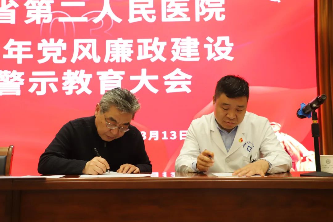 会上,全体参会人员观看了警示教育专题片。院党委与各科室签订了《成人导航 党风廉政建设 行风建设》责任书。
