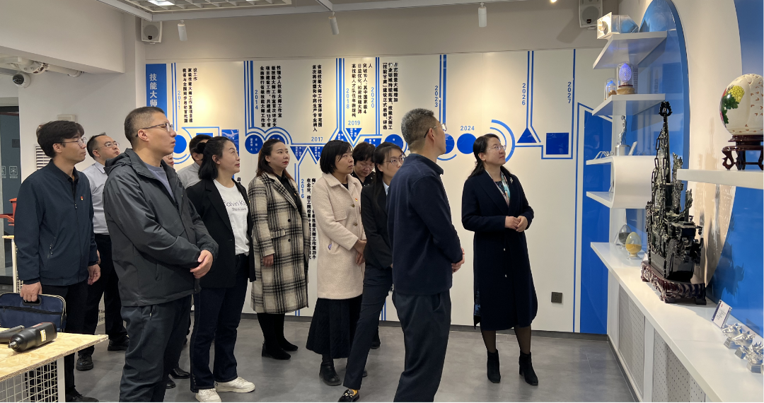 省职业能力建设指导中心党支部书记、主任雷争宁向省二院护理部、公卫与院感党支部一行介绍了甘肃省技能大师之家建设情况和中心党建工作,并带领大家参观了甘肃省技能大师之家。展厅里大师们一件一件精美的非遗技能展示作品给大家留下了深刻印象,纷纷感叹,没想到我们甘肃还有这么多默默在技能岗位上不断努力探索,做出让人意想不到、令人敬佩的卓越贡献的能工巧匠们。
