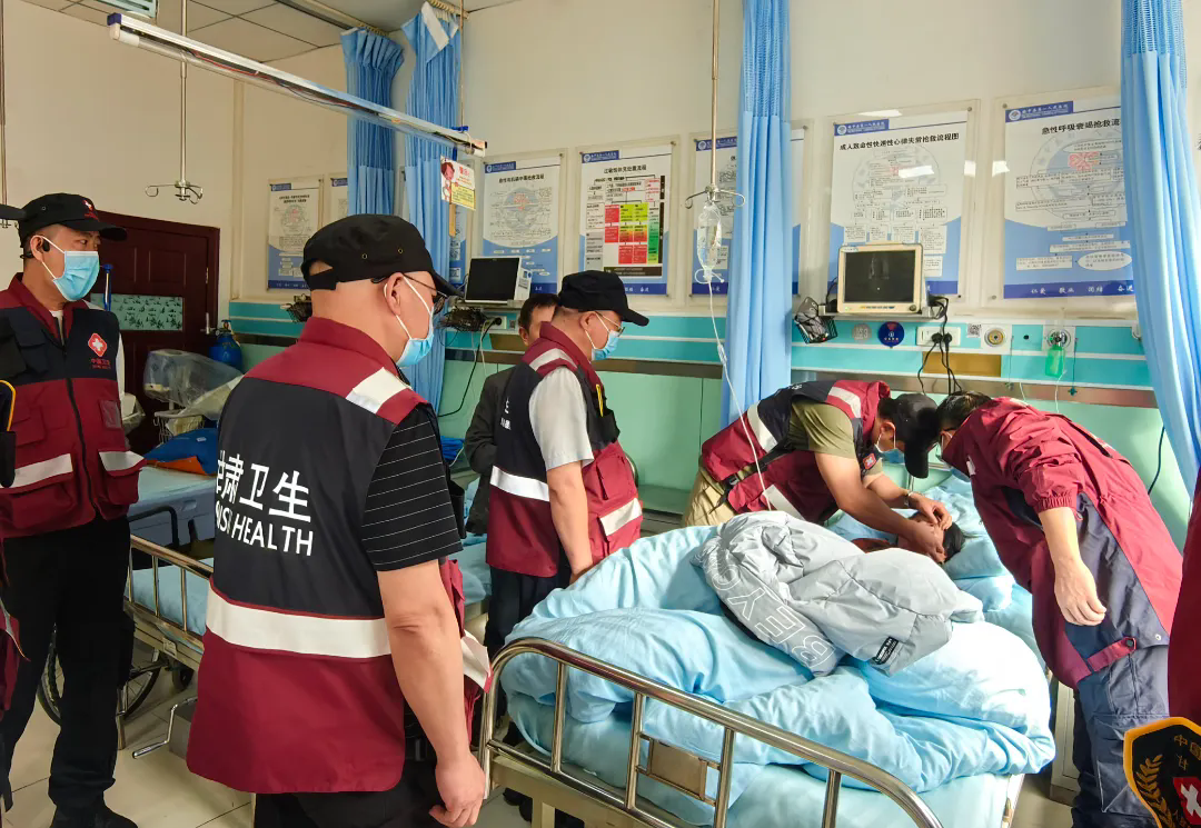 上午8点左右,救援队按照工作安排抵达榆中县人民医院,对接交付药品后,即刻投入工作。受省卫健委临时指派,韩浩按照委领导工作要求马上组织省级6家医院医疗队长及榆中县人民医院迅速建立了省级专家MDT会诊救治机制及流程、指导完善灾区患者收治专用病区、落实抢救设施药品及用血统一调配、建立了省级专家专业及多学科救治小组的分组排班及院前院内分级分层省级专家救治工作流程、病区省级专家多学科会诊及查房工作流程,并带领专家组成员至急诊科、专用病区、ICU、药房等科室及各类急救抢救设施设备、用血等进行现场督导核实、查漏补缺,为患者救治做好了充分准备。