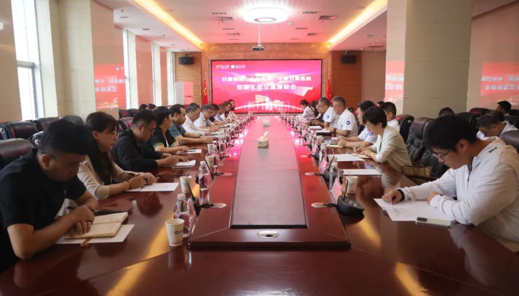 参观结束后,双方围绕“党建文化建设如何赋能业务发展”举行座谈交流会。中山大学附属肿瘤医院甘肃医院党委书记张云围绕“围绕业务抓党建,抓好党建促发展”主题,系统介绍了该院作为国家肿瘤区域医疗中心建设单位,在推进党建与业务融合方面的具体路径与成效,重点分享了“党建+”模式、“七个聚焦”及40条具体措施,以及在学科建设、科研创新、人才引进、服务提升与文化建设等方面的先进做法。
