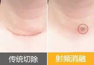 该技术创伤小、手术时间短、出血量少、并发症少,避免了传统外科手术并发症较多、创伤较大、颈部美观效果差,损伤正常腺体引起甲状腺功能减退,后需终身服药等弊端;甲状腺结节热消融治疗具有微创、恢复快、治疗疗效确切的优点,并发症发生率较低,术后恢复快,术后病人当即可以下地活动,术后仅有针眼,几天后完全无痕。