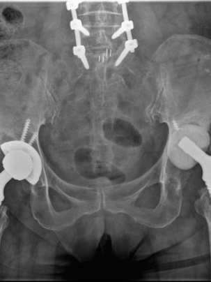 2023年1月,李大妈感左侧髋部疼痛明显,活动受限,复诊提示左侧髋关节髋臼松动翻转,假体上移。