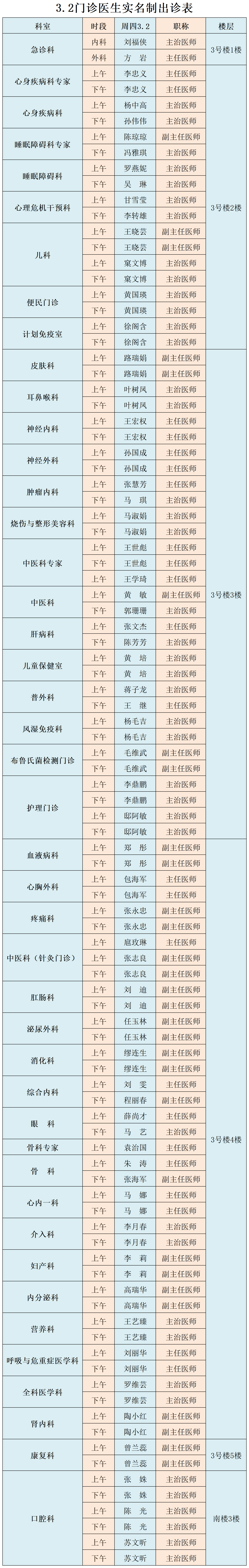 成人导航 、西北民族大学附属医院3月3日(星期五) 门诊出诊信息