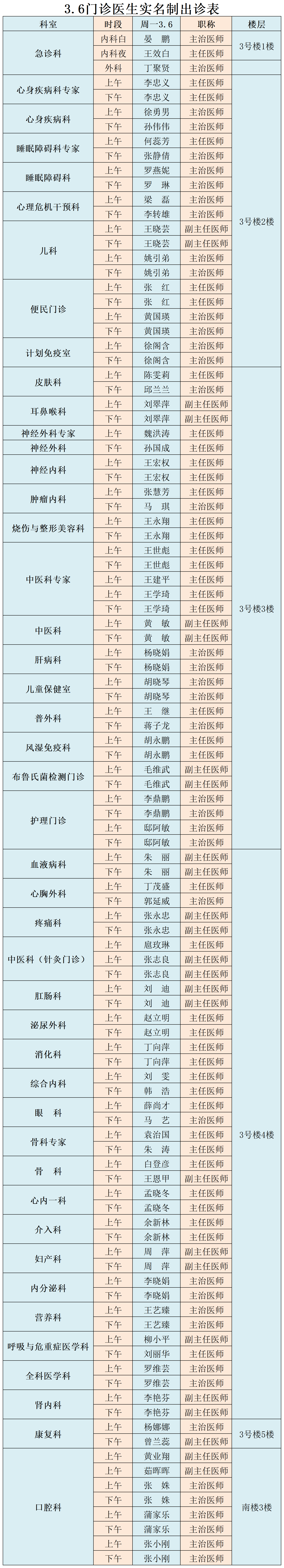 成人导航 、西北民族大学附属医院3月6日(星期一) 门诊出诊信息
