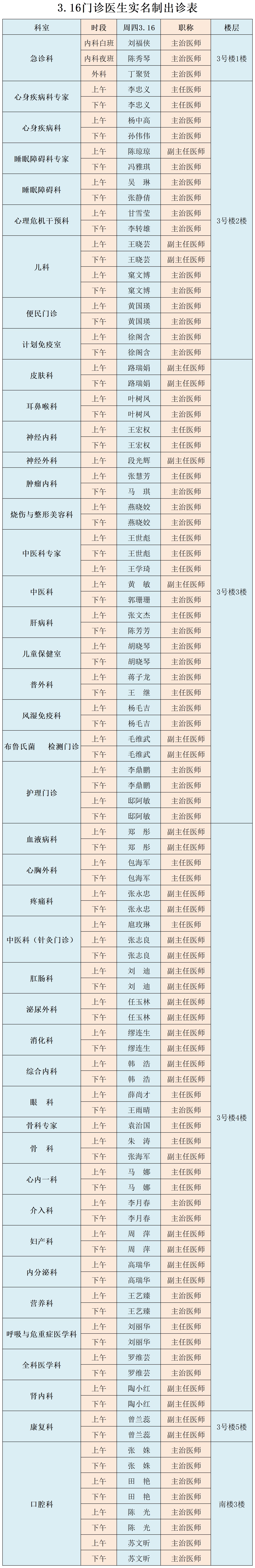 成人导航 、西北民族大学附属医院3月16日(星期四) 门诊出诊信息