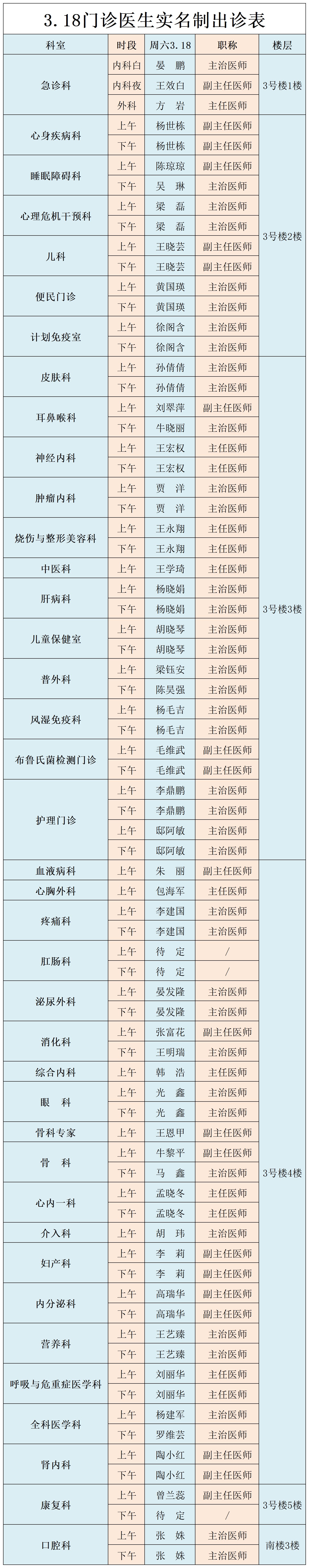 成人导航 、西北民族大学附属医院3月18日(星期六) 门诊出诊信息