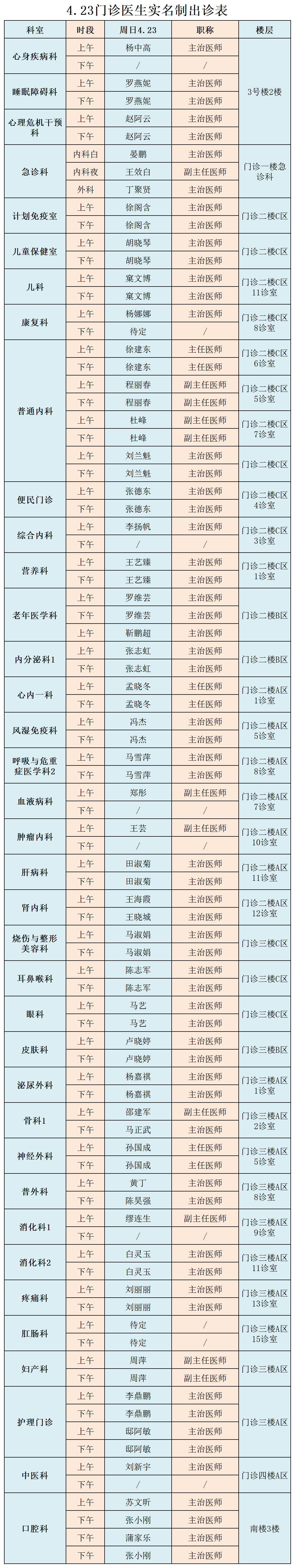 成人导航 、西北民族大学附属医院4月23日(星期日) 门诊出诊信息