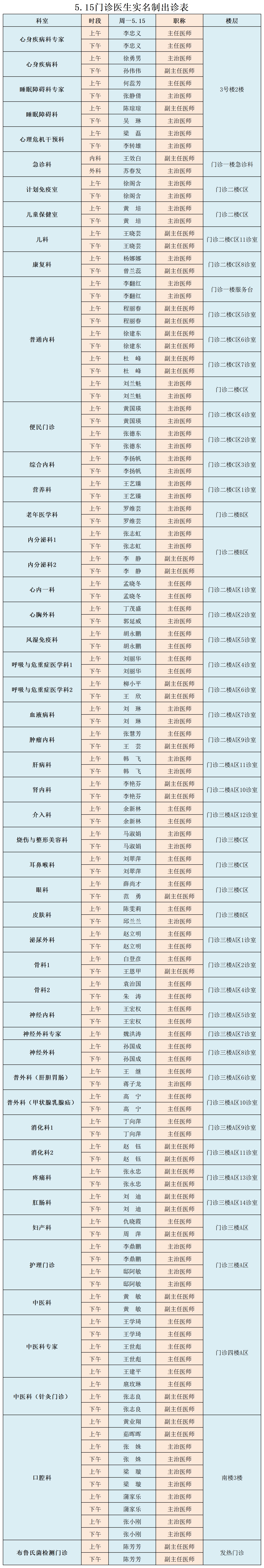 成人导航 、西北民族大学附属医院5月15日(星期一) 门诊出诊信息