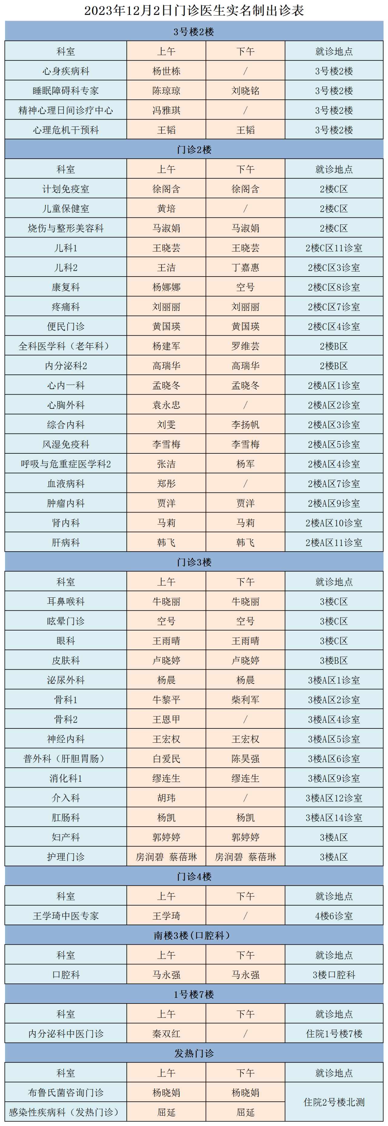 成人导航 、西北民族大学附属医院12月2日(星期六) 门诊出诊信息