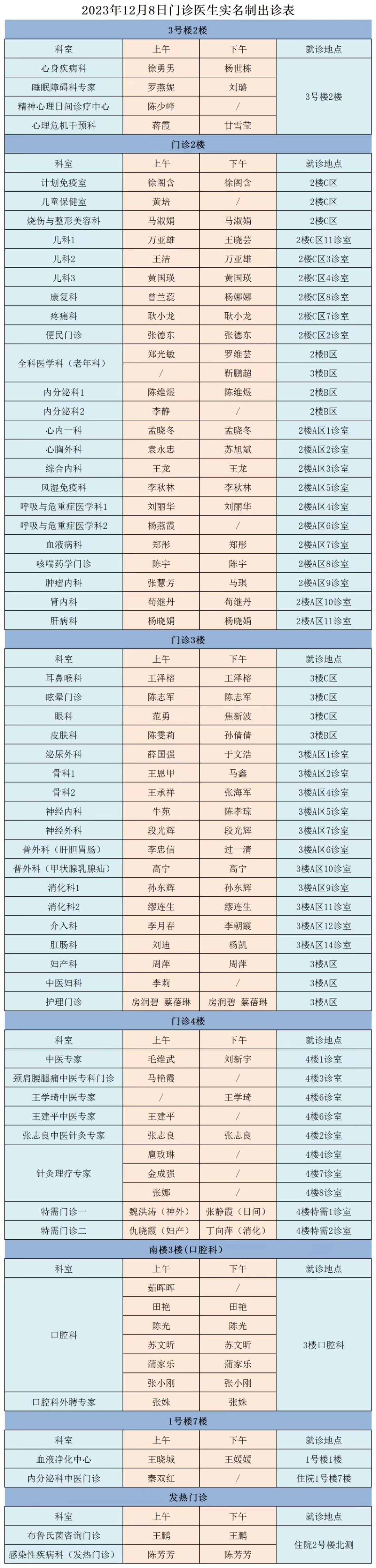 成人导航 、西北民族大学附属医院12月8日(星期五)门诊出诊信息