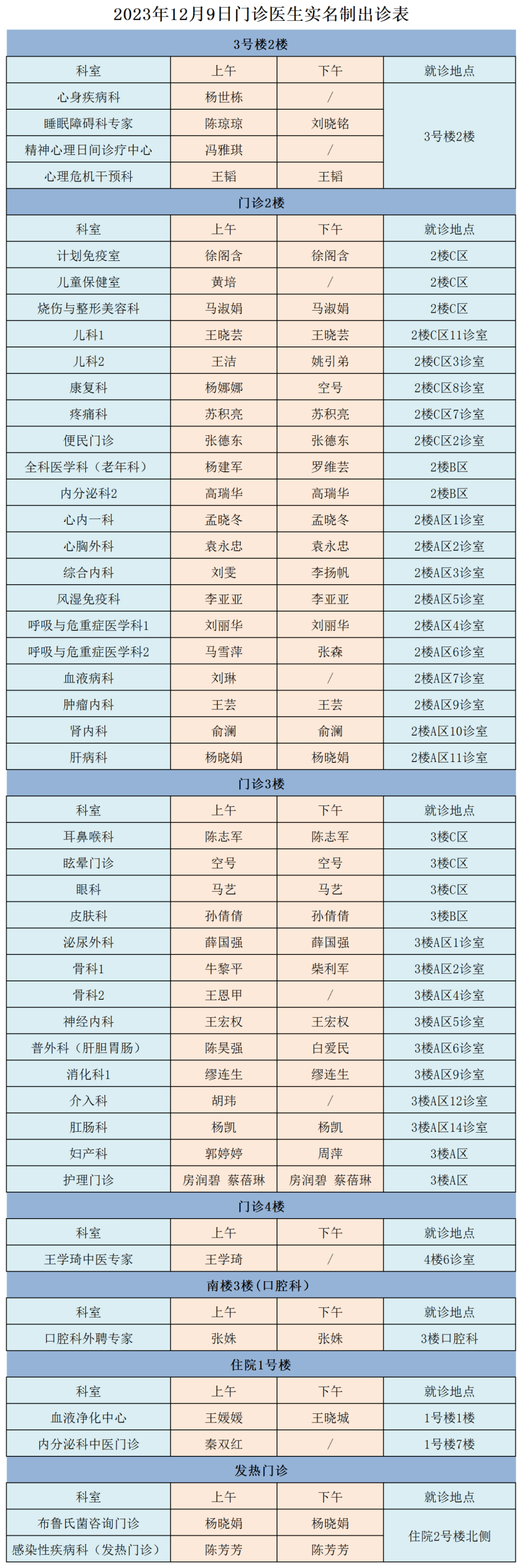 成人导航 、西北民族大学附属医院12月9日(星期六)门诊出诊信息