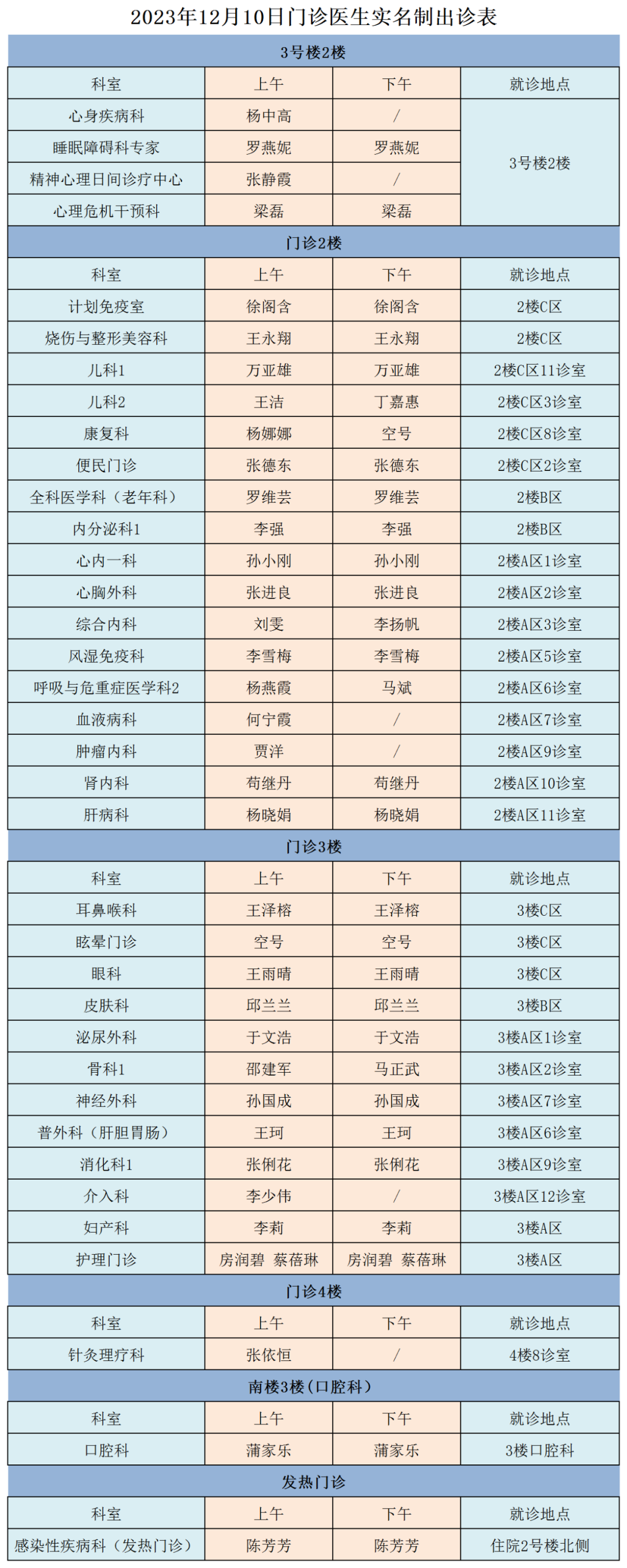 成人导航 、西北民族大学附属医院12月10日(星期天)门诊出诊信息