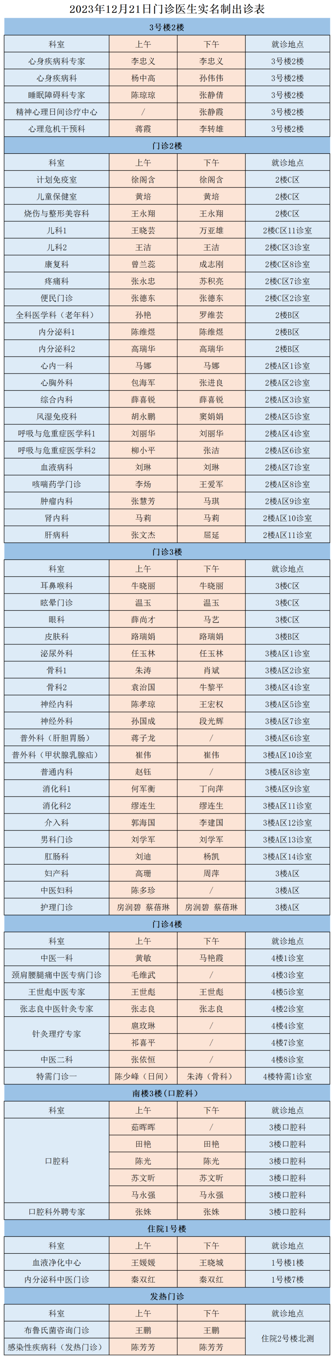 成人导航 、西北民族大学附属医院12月21日(星期四)门诊出诊信息
