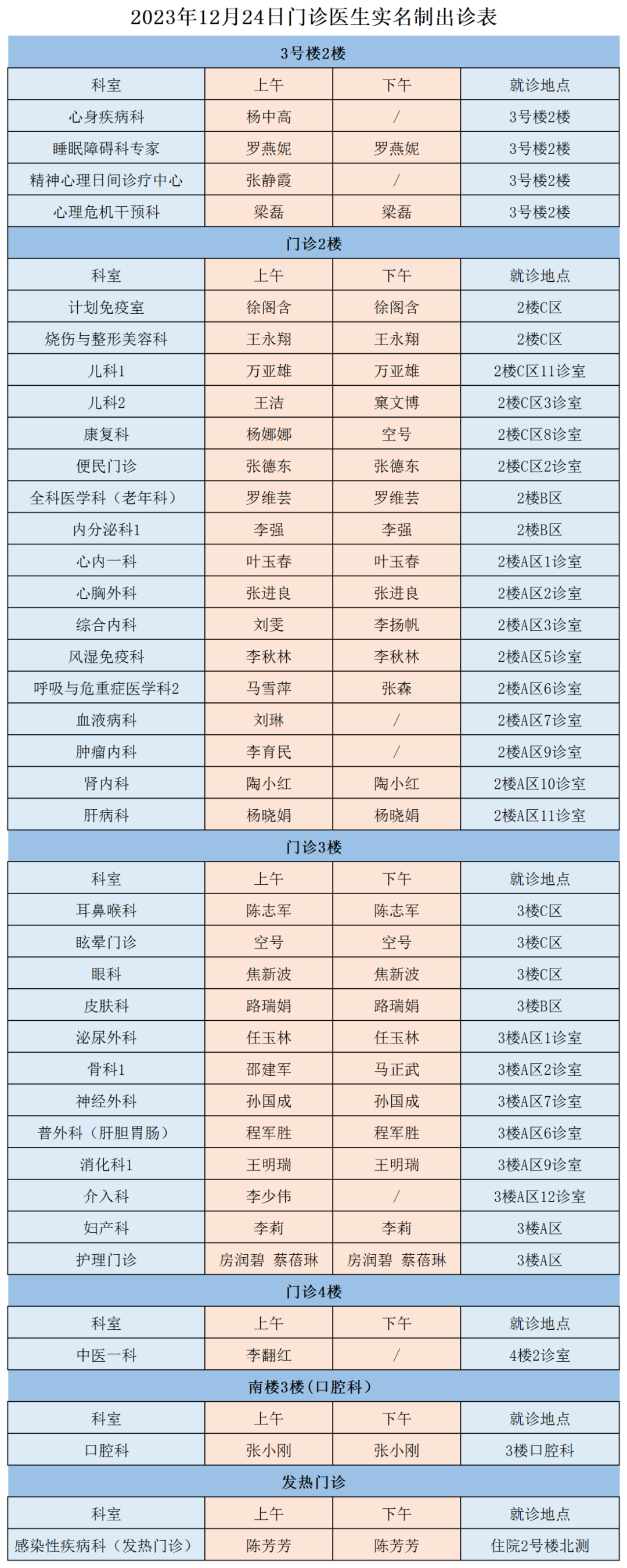 成人导航 、西北民族大学附属医院12月24日(星期日)门诊出诊信息
