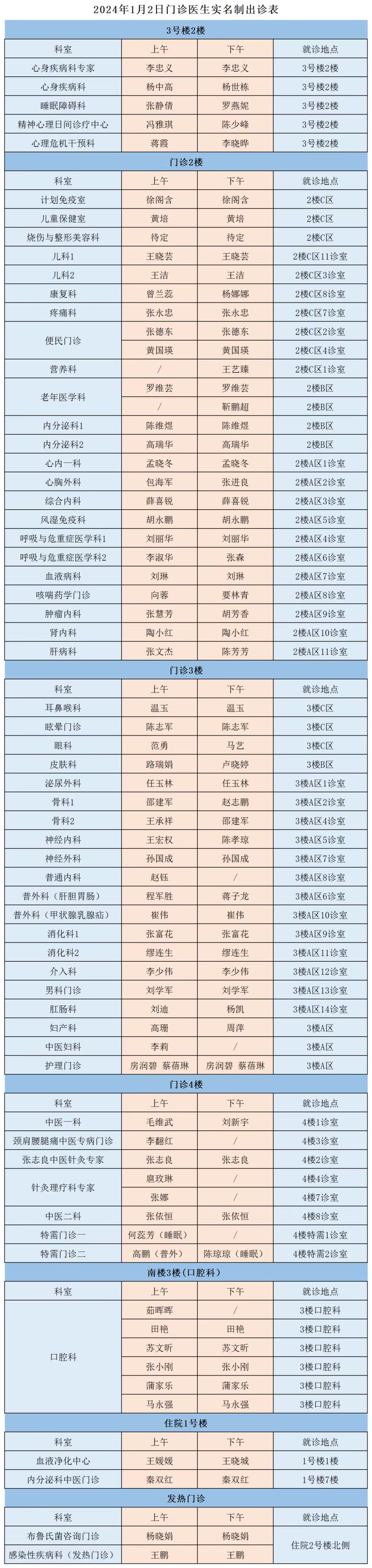 成人导航 、西北民族大学附属医院1月2日(星期二)门诊出诊信息