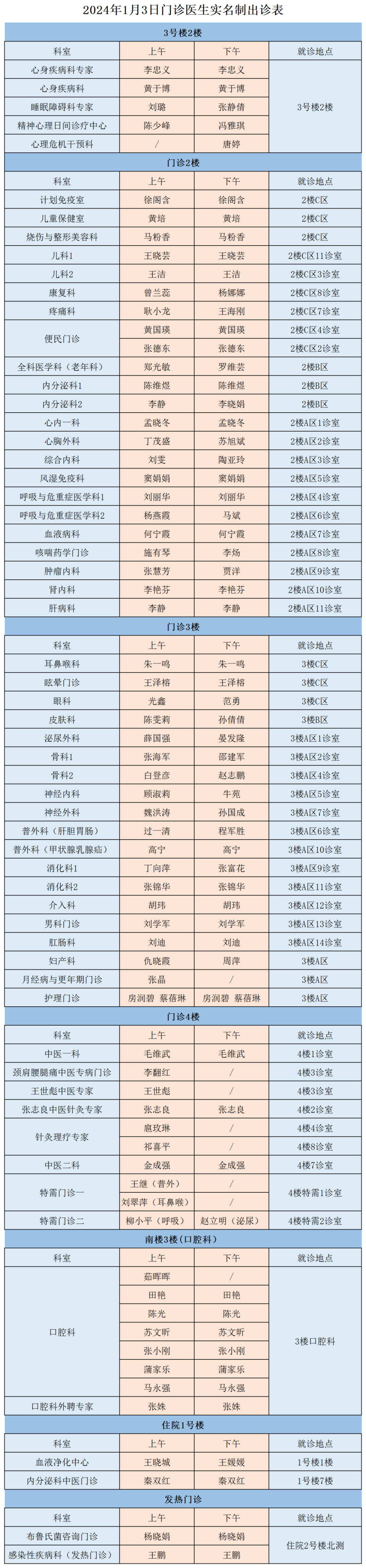 成人导航 、西北民族大学附属医院1月3日(星期三)门诊出诊信息