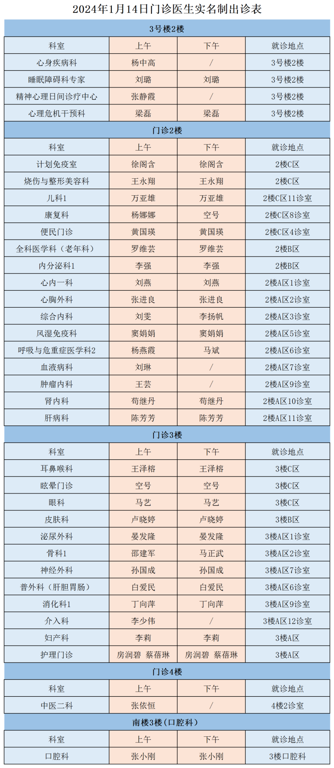 成人导航 、西北民族大学附属医院1月14日(星期日)门诊出诊信息