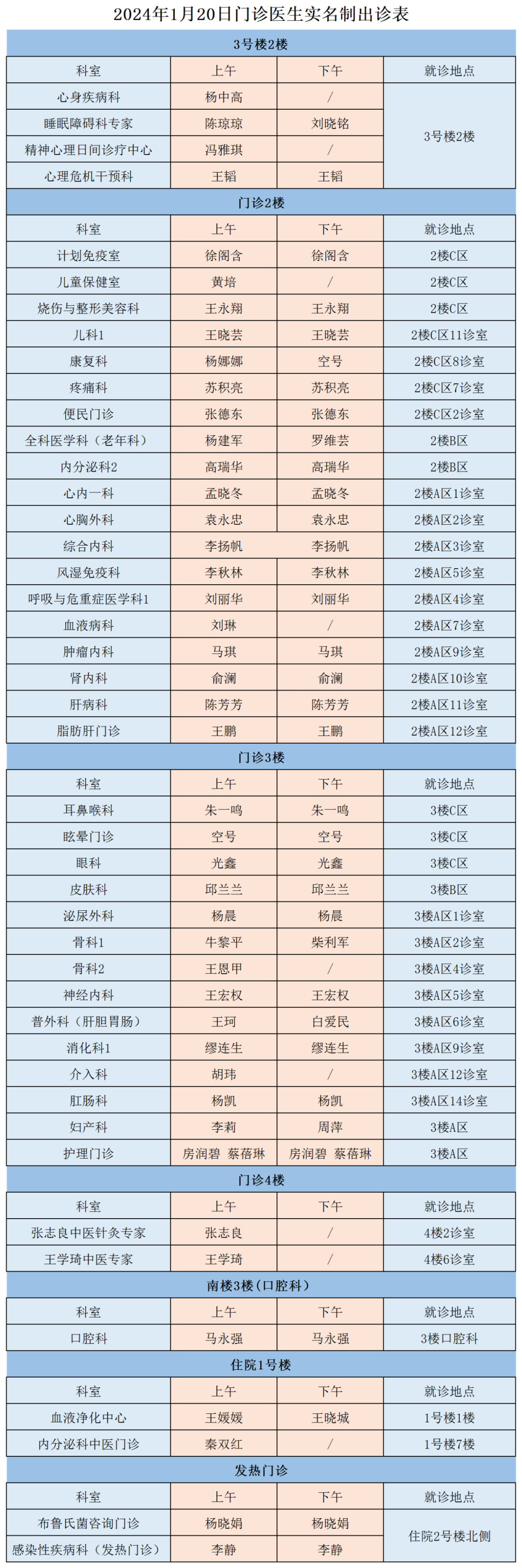 成人导航 、西北民族大学附属医院1月20日(星期六)门诊出诊信息