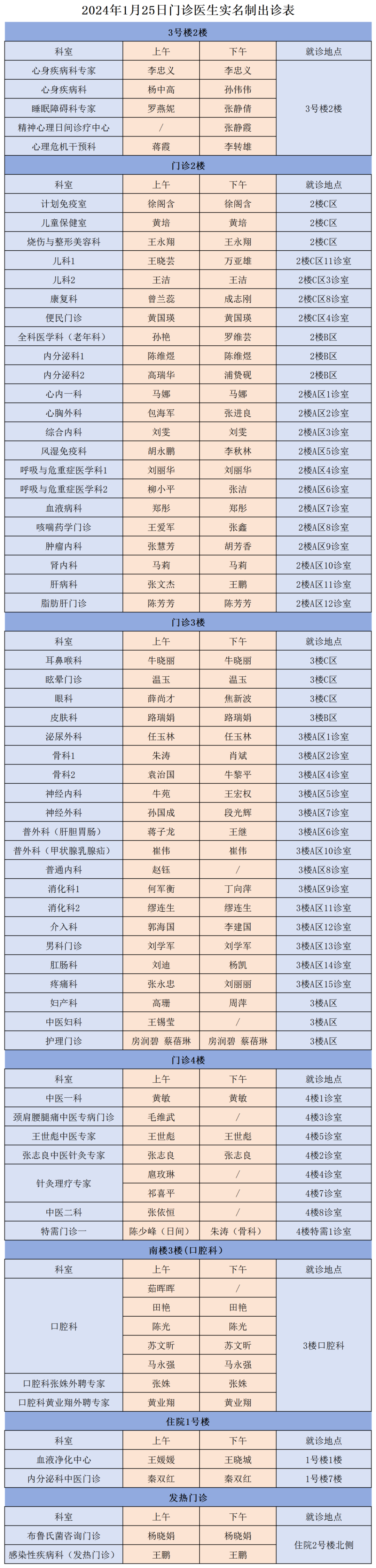 成人导航 、西北民族大学附属医院1月25日(星期四)门诊出诊信息