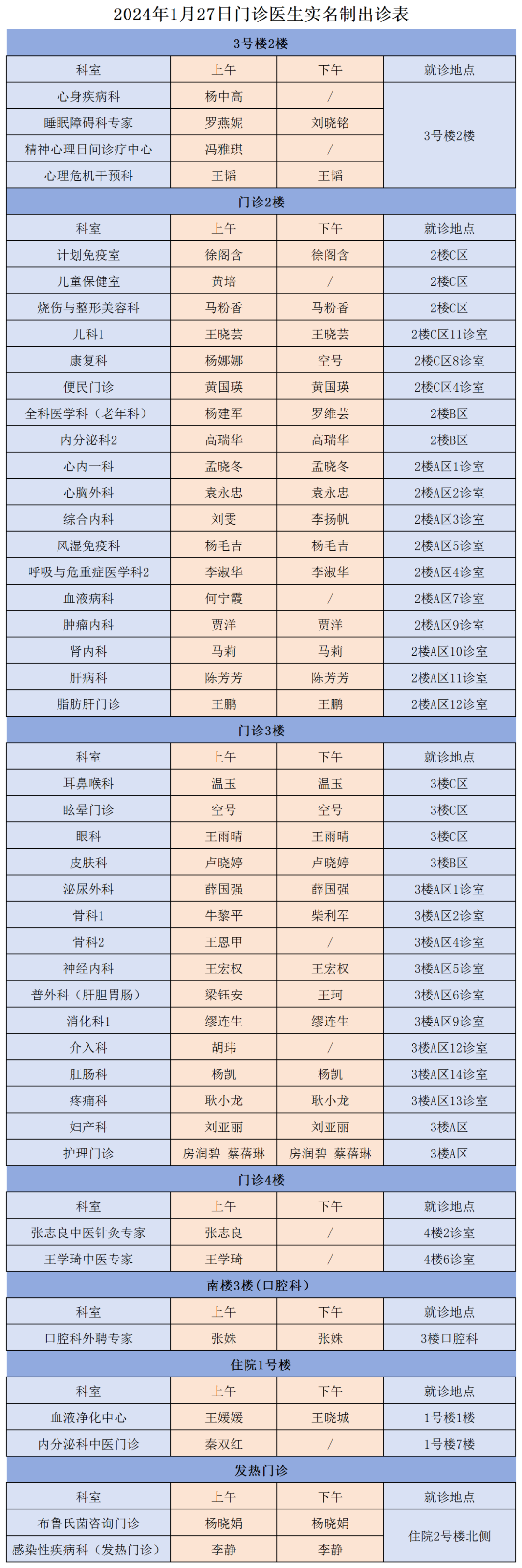 成人导航 、西北民族大学附属医院1月27日(星期六)门诊出诊信息