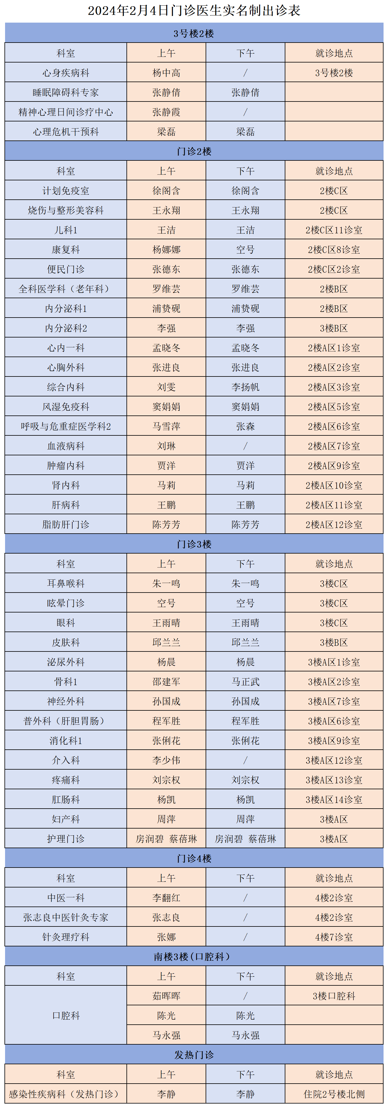 成人导航 、西北民族大学附属医院2月4日(星期日)门诊出诊信息