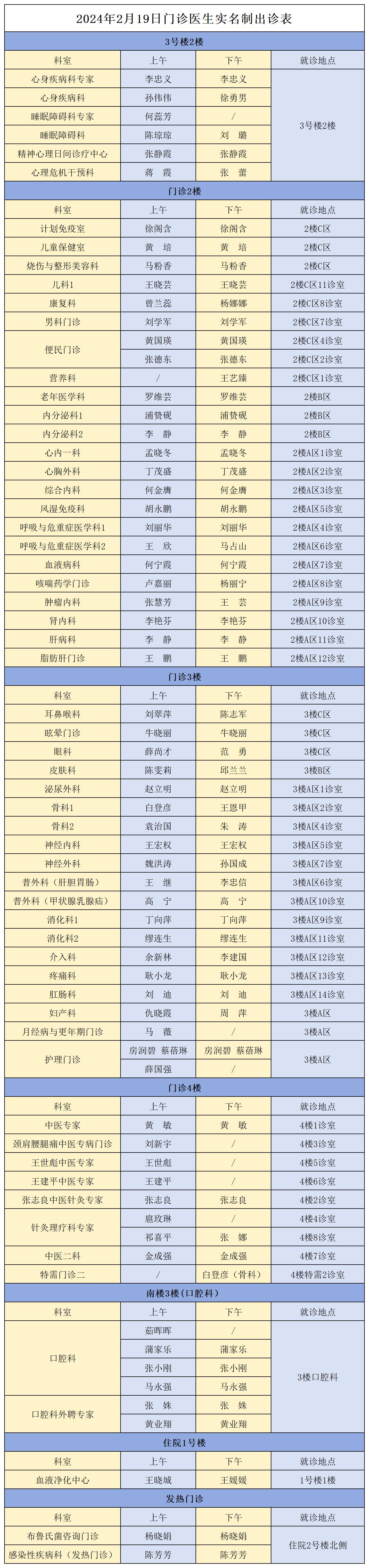 成人导航 、西北民族大学附属医院2月19日(星期一)门诊出诊信息