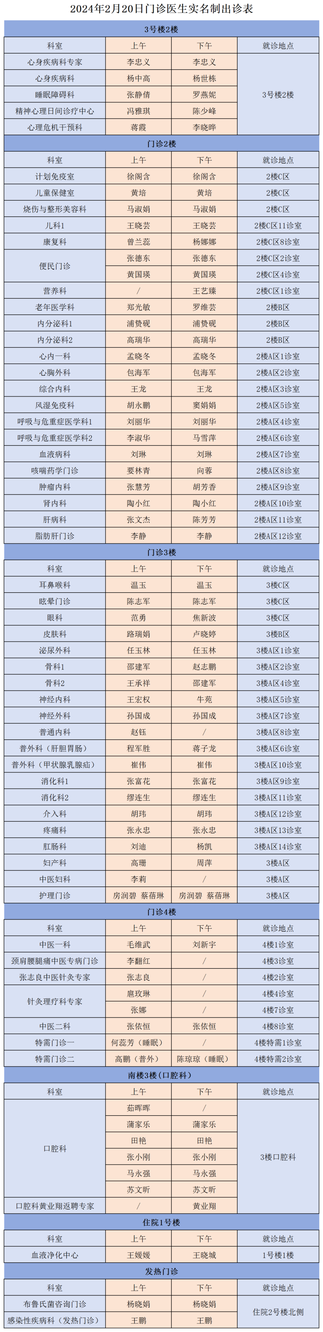 成人导航 、西北民族大学附属医院2月20日(星期二)门诊出诊信息