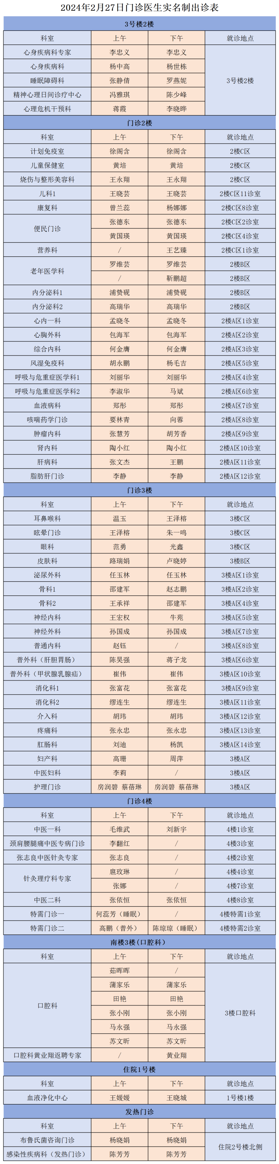 成人导航 、西北民族大学附属医院2月27日(星期二)门诊出诊信息