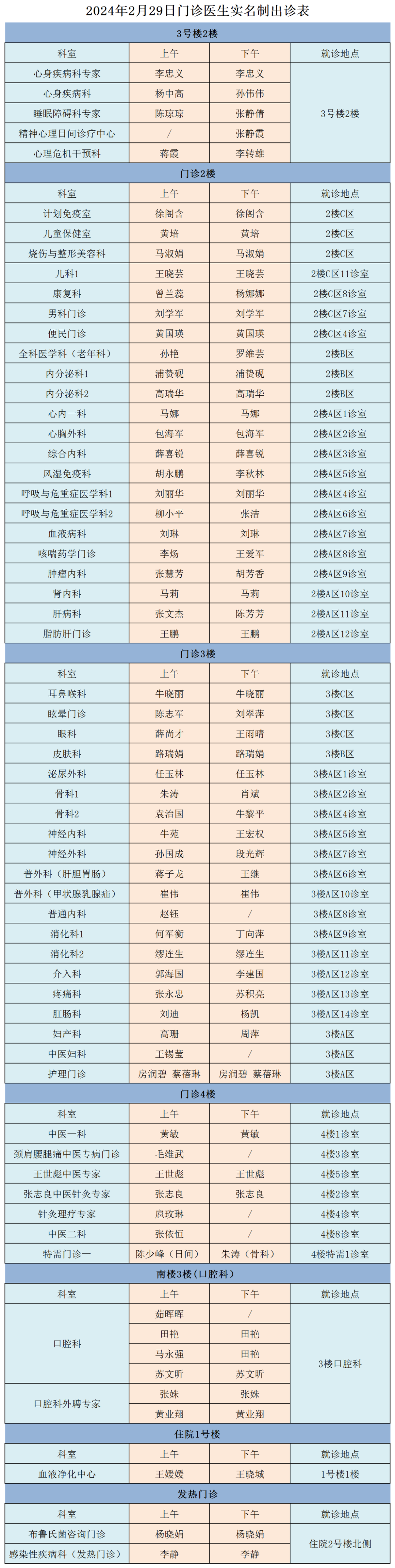 成人导航 、西北民族大学附属医院2月29日(星期四)门诊出诊信息