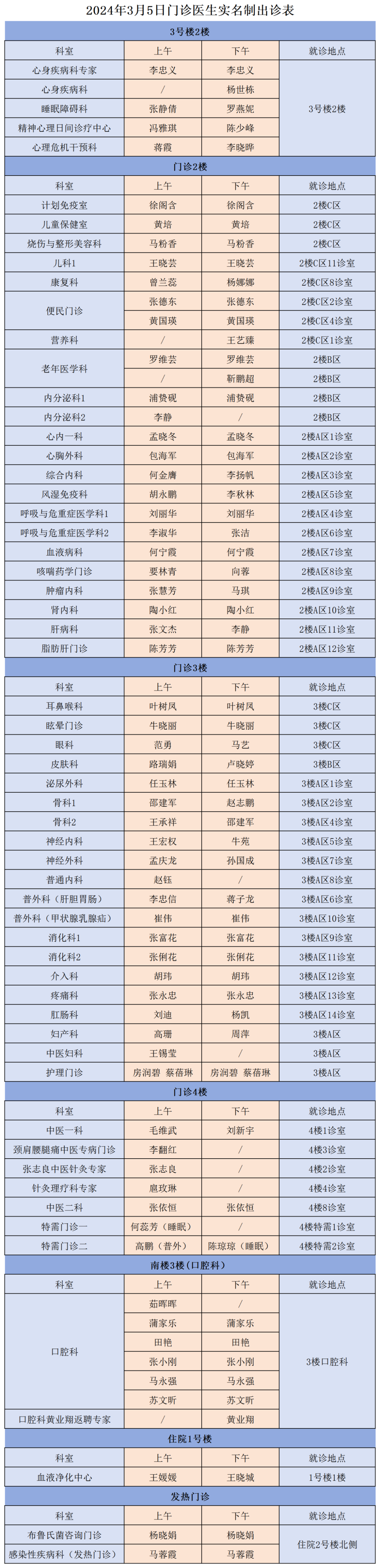 成人导航 、西北民族大学附属医院3月5日(星期二)门诊出诊信息