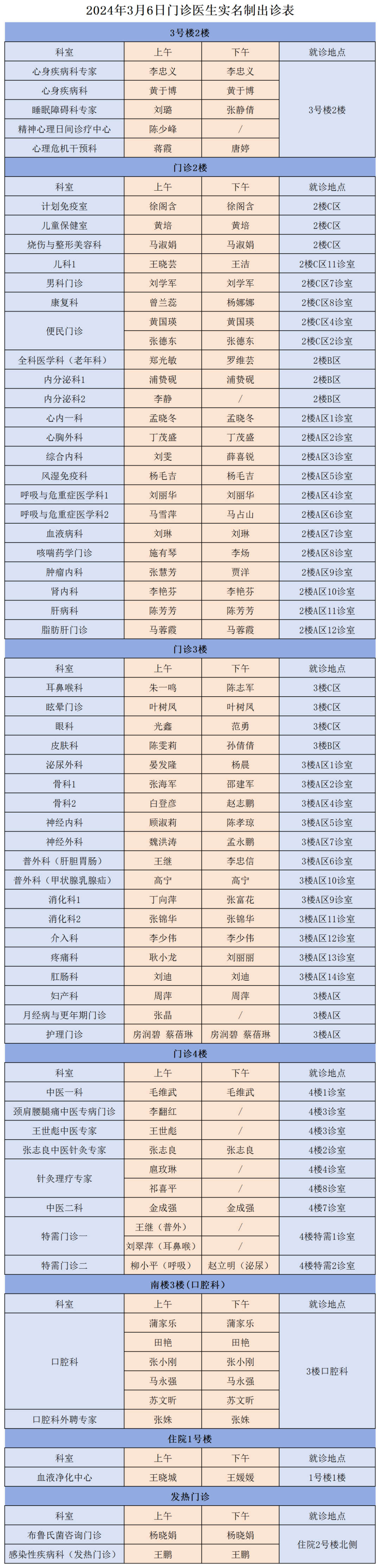 成人导航 、西北民族大学附属医院3月6日(星期三)门诊出诊信息