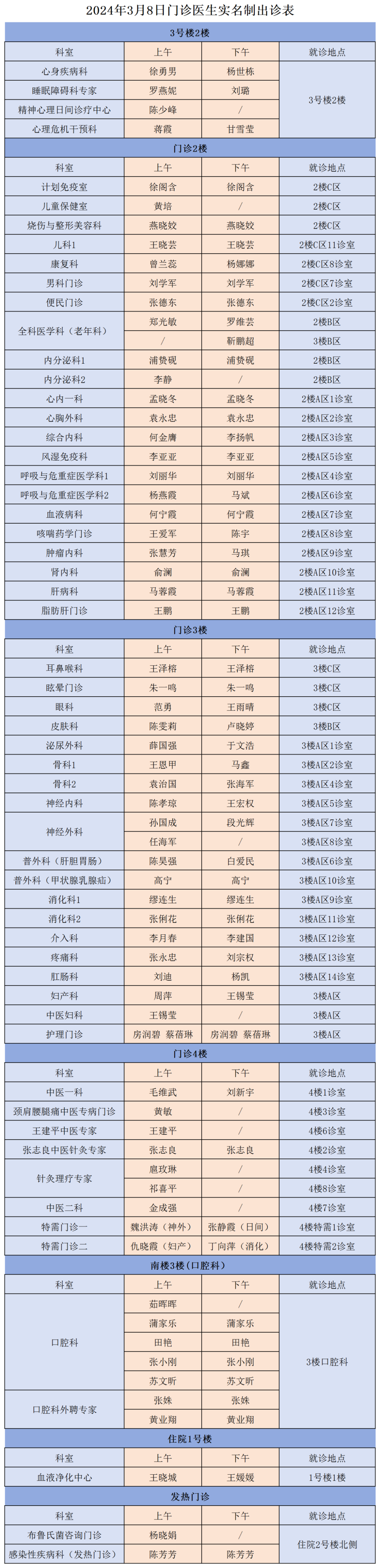 成人导航 、西北民族大学附属医院3月8日(星期五)门诊出诊信息