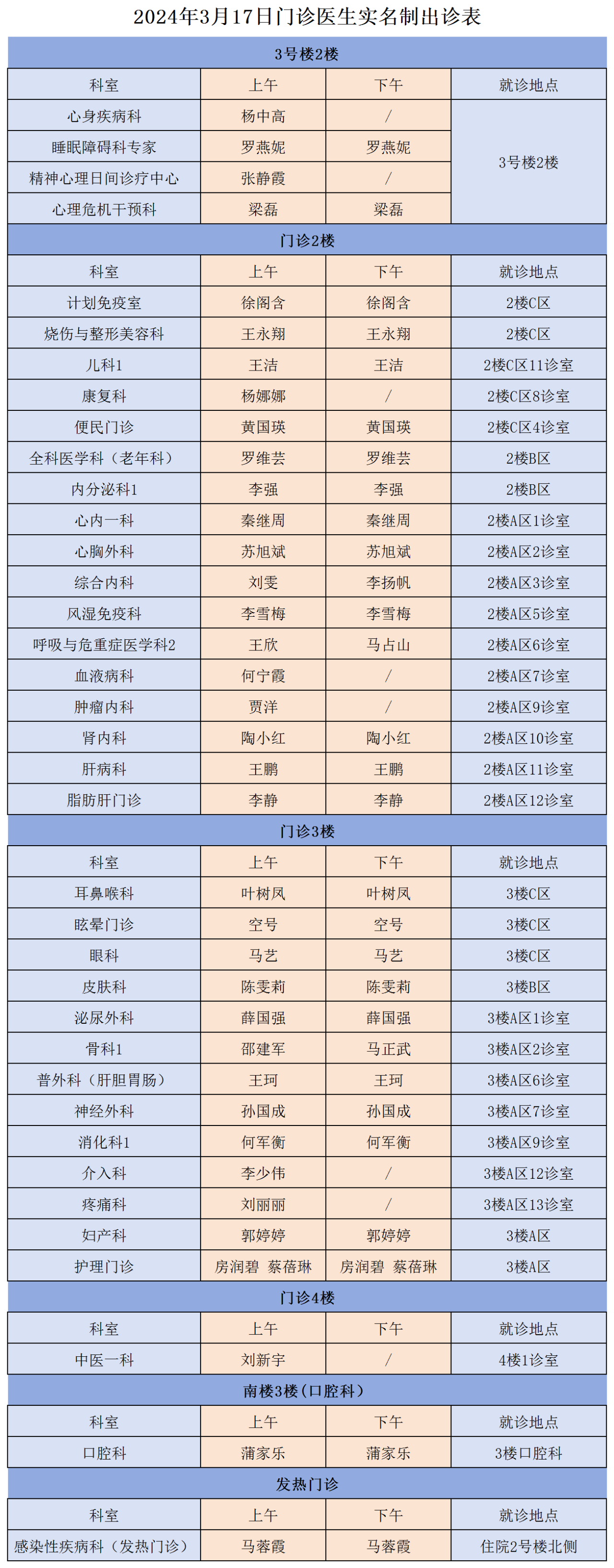 成人导航 、西北民族大学附属医院3月17日(星期日)门诊出诊信息