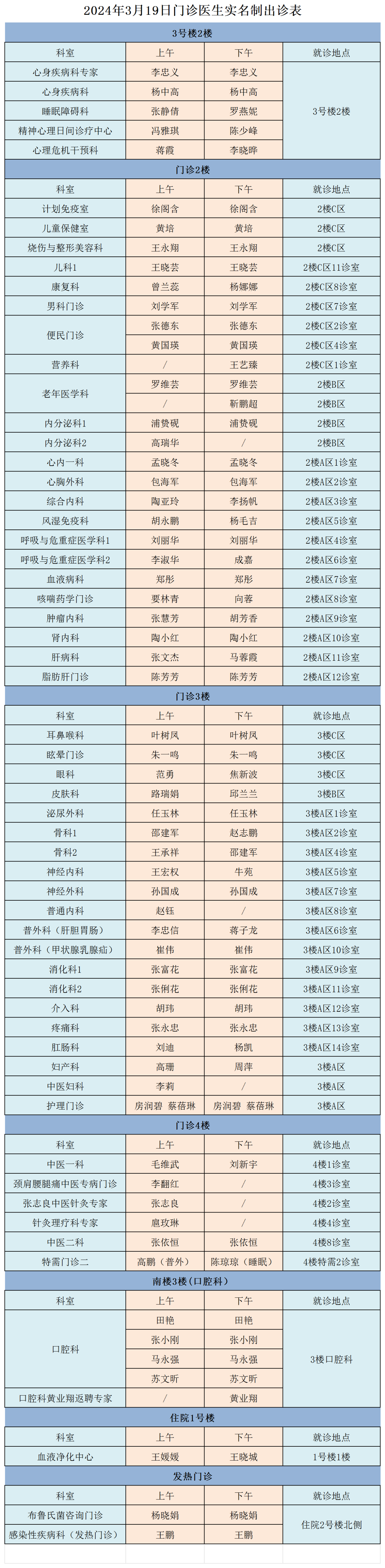 成人导航 、西北民族大学附属医院3月19日(星期二)门诊出诊信息