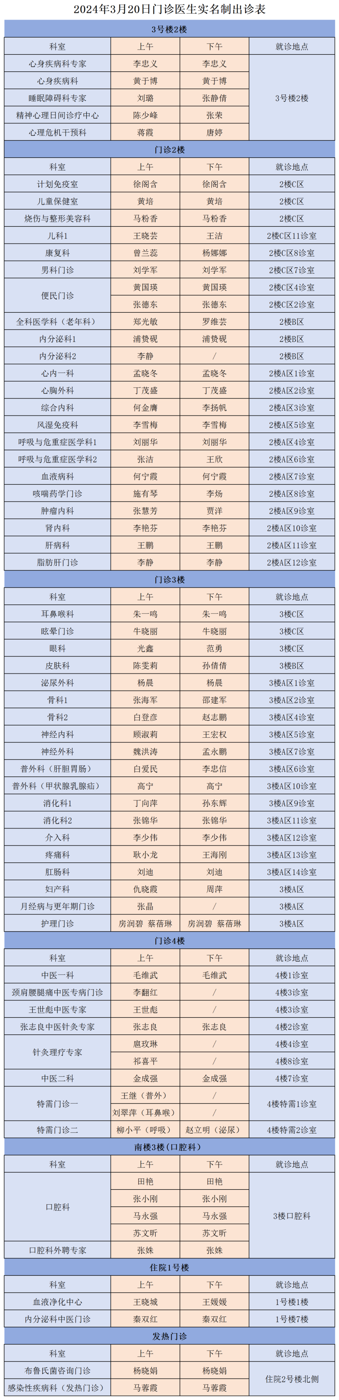 成人导航 、西北民族大学附属医院3月20日(星期三)门诊出诊信息