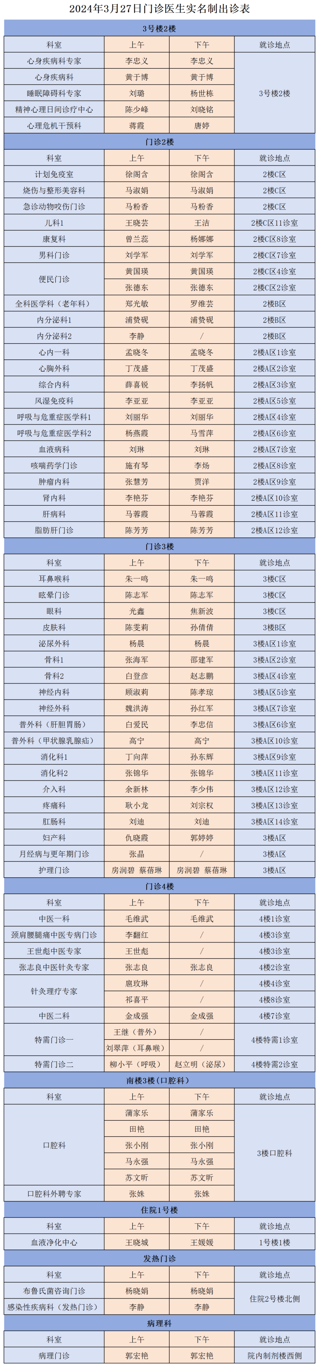 成人导航 、西北民族大学附属医院3月27日(星期三)门诊出诊信息