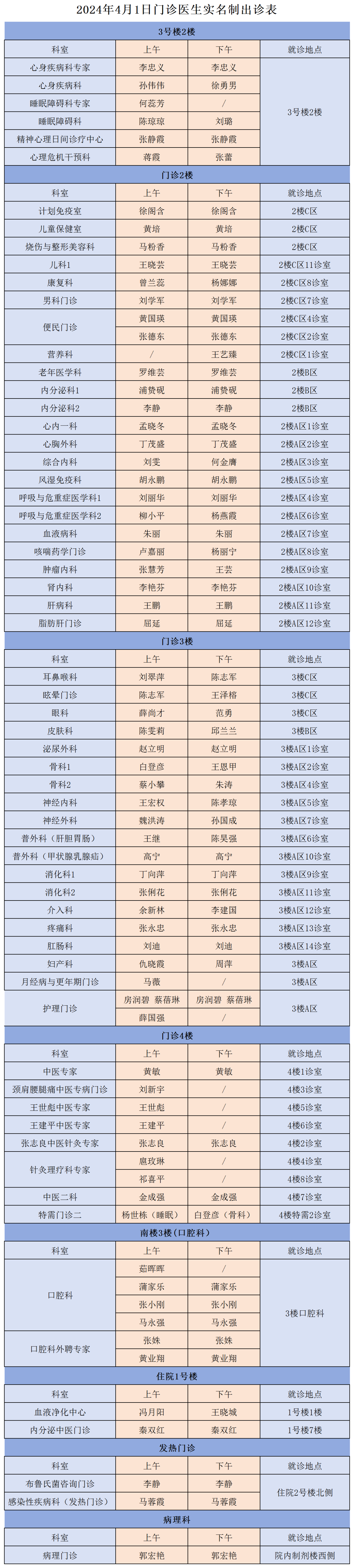 成人导航 、西北民族大学附属医院4月1日(星期一)门诊出诊信息