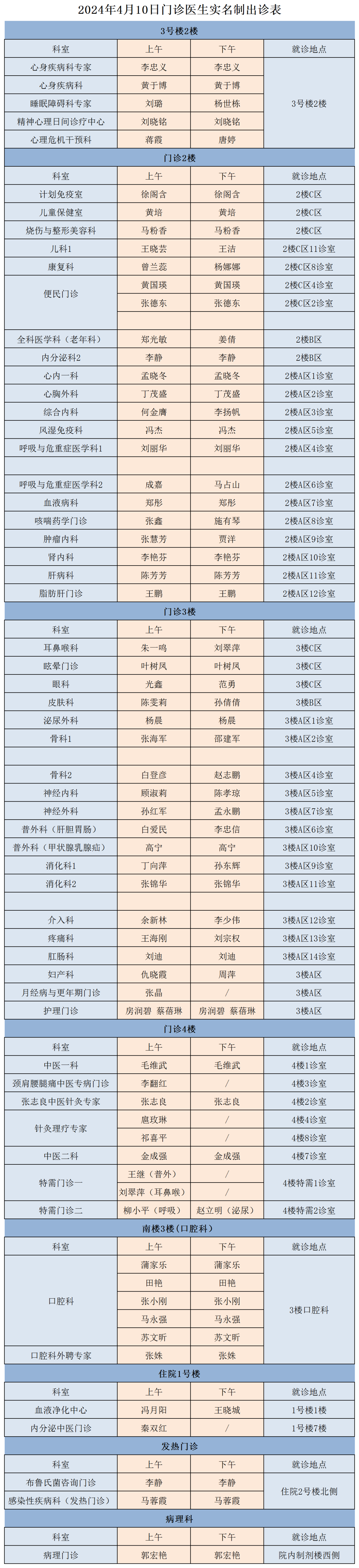 成人导航 、西北民族大学附属医院4月10日(星期三)门诊出诊信息