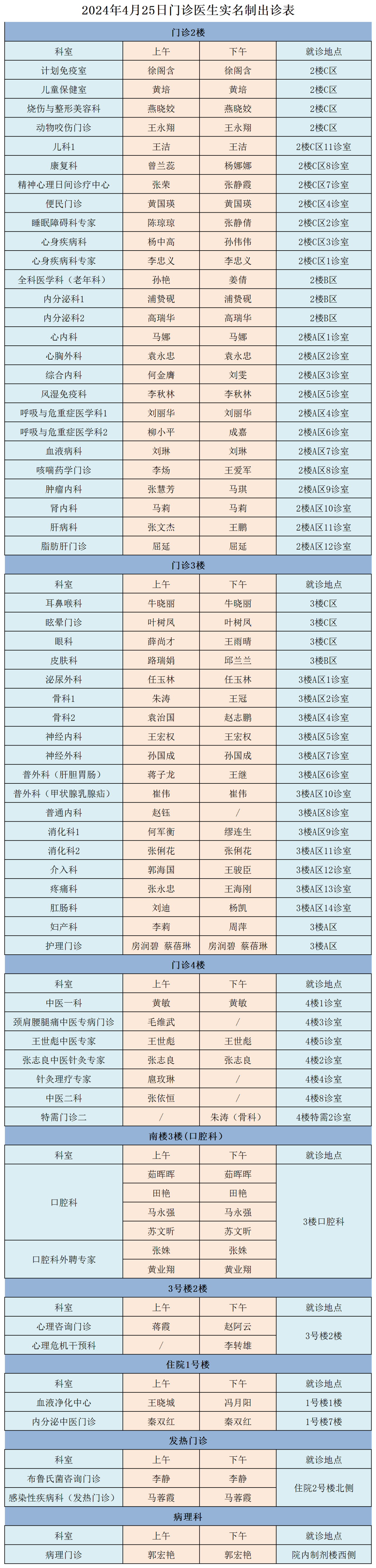 成人导航 、西北民族大学附属医院4月25日(星期四)门诊出诊信息