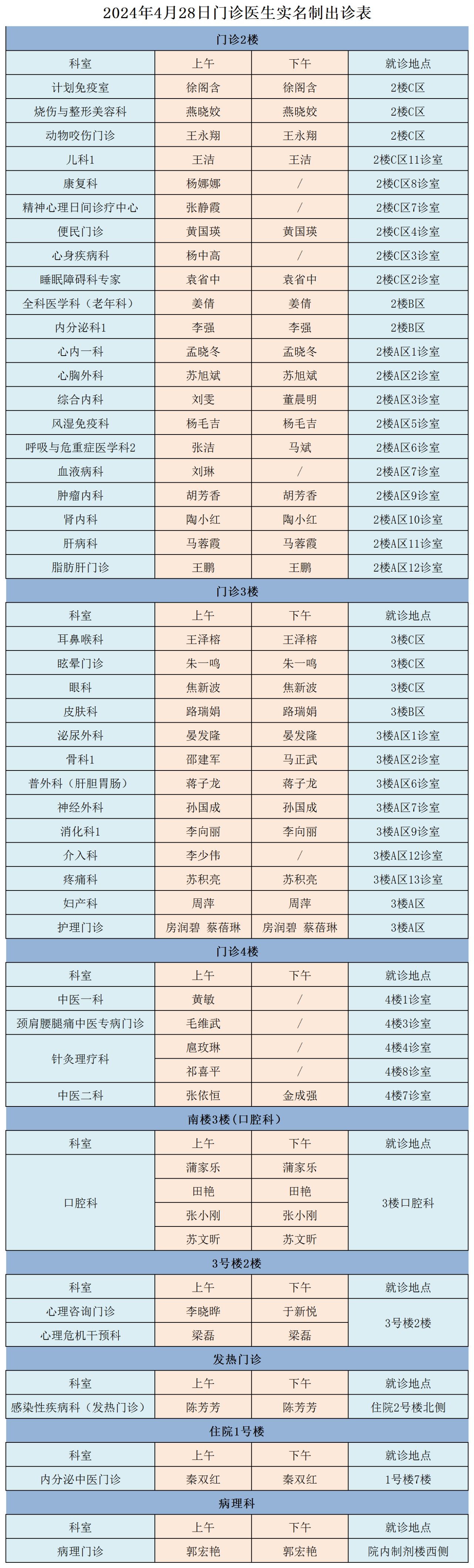 成人导航 、西北民族大学附属医院4月28日(星期日)门诊出诊信息