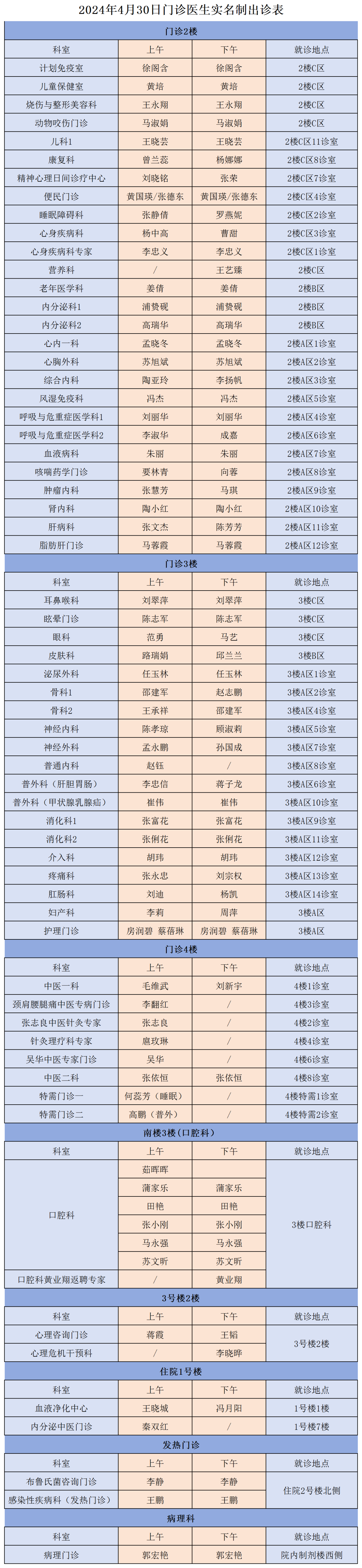 成人导航 、西北民族大学附属医院4月30日(星期二)门诊出诊信息