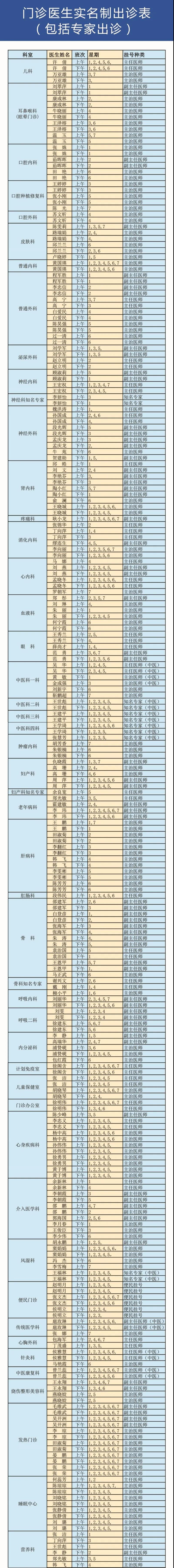 西北民族大学附属医院、成人导航 4月12日(星期天) 门诊出诊信息