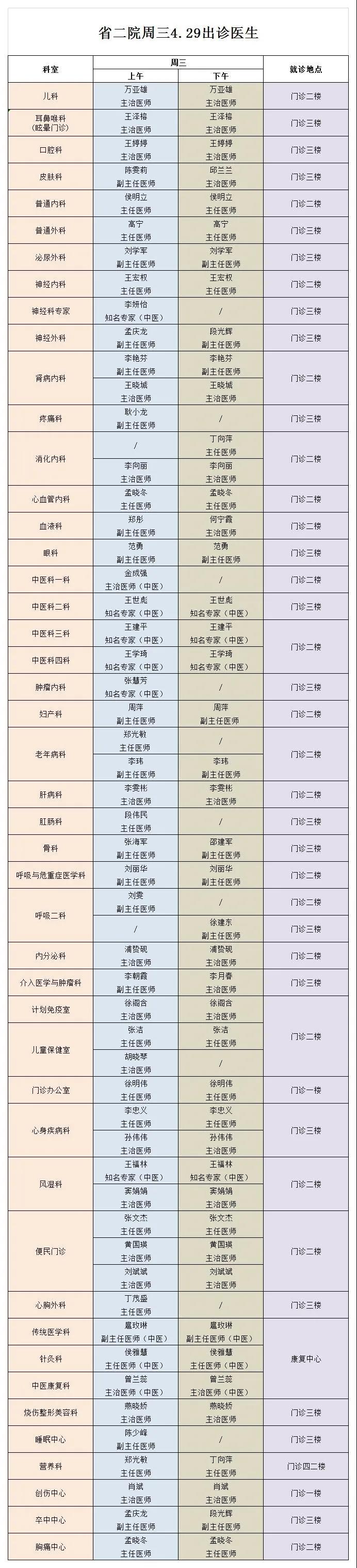 西北民族大学附属医院、成人导航 4月29日(星期三)门诊出诊信息