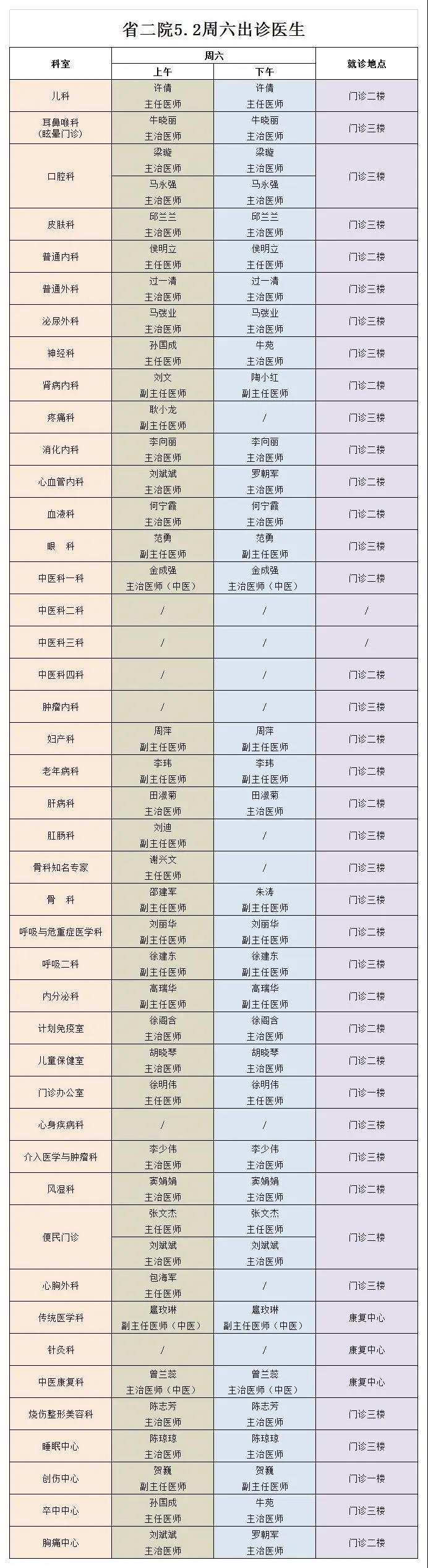 西北民族大学附属医院、成人导航 5月2日(星期六)门诊出诊信息