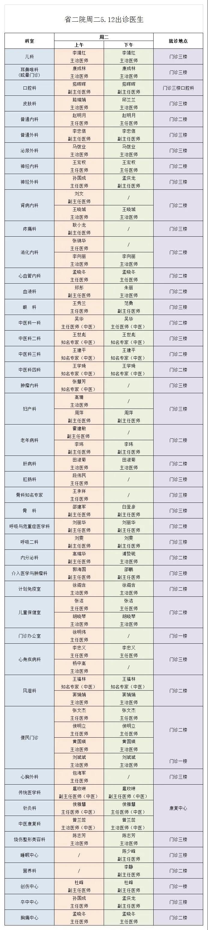 西北民族大学附属医院、成人导航 5月12日(星期二)门诊出诊信息