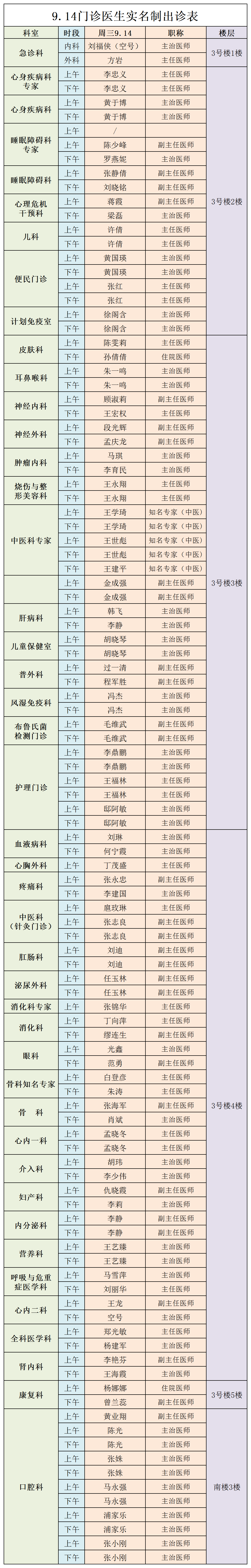 成人导航 、西北民族大学附属医院9月14日(星期三) 门诊出诊信息