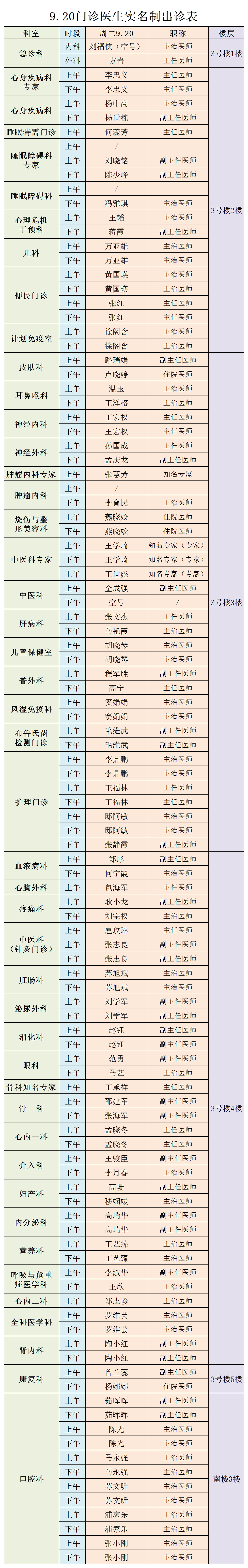 成人导航 、西北民族大学附属医院9月20日(星期二) 门诊出诊信息
