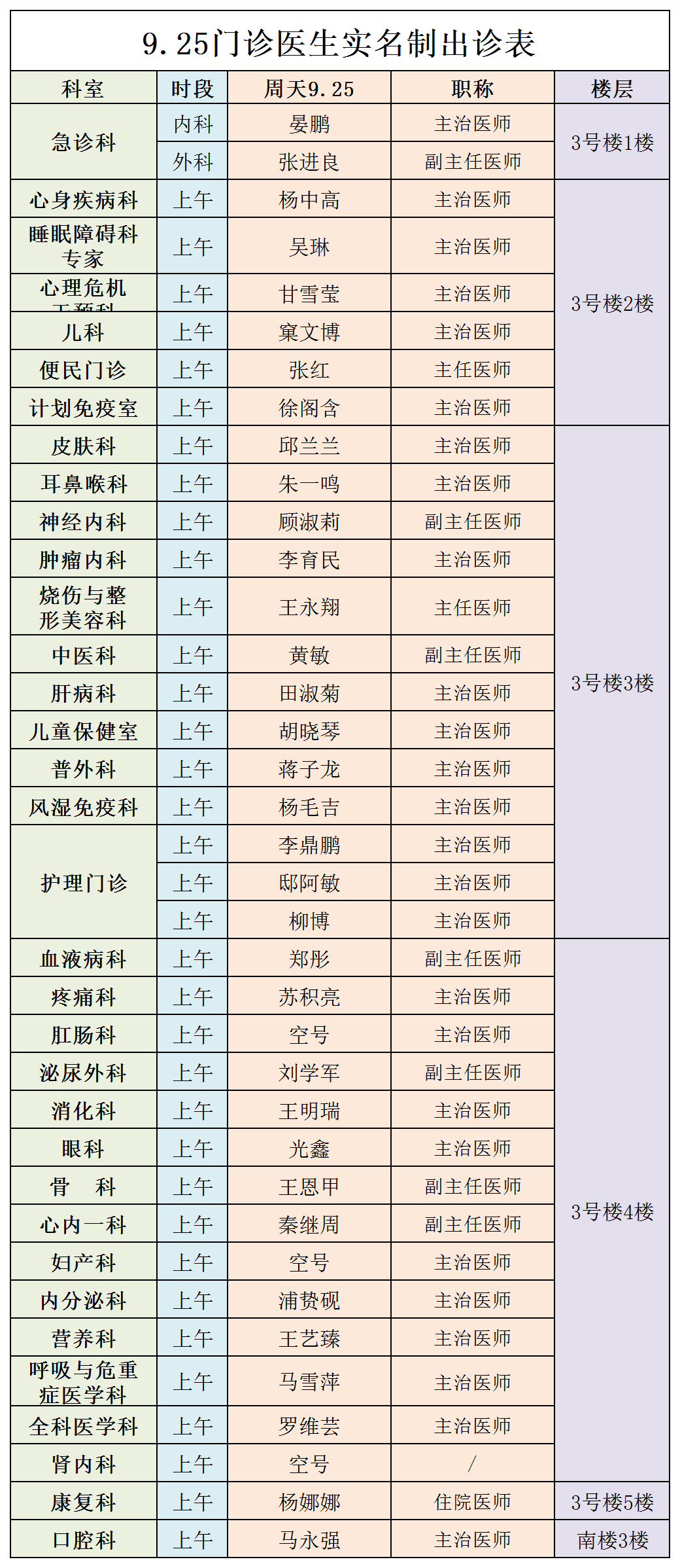 成人导航 、西北民族大学附属医院9月25日(星期日) 门诊出诊信息