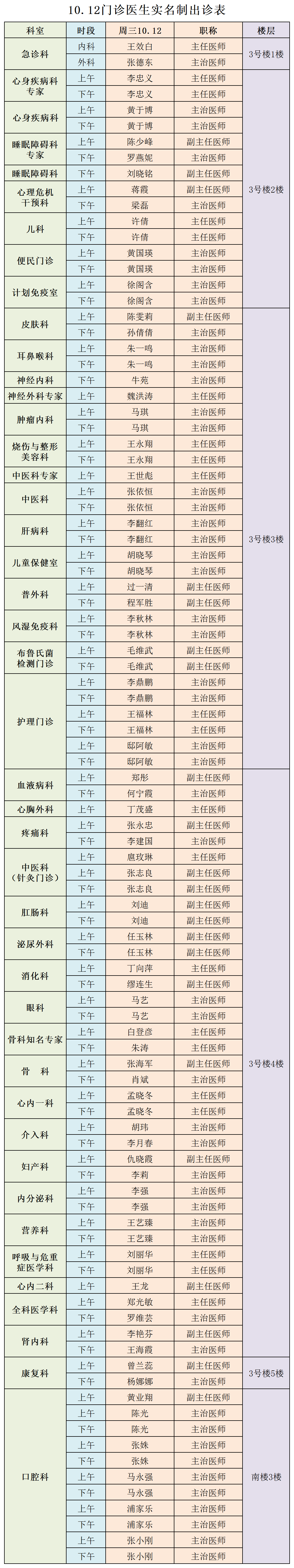 成人导航 、西北民族大学附属医院10月12日(星期三) 门诊出诊信息